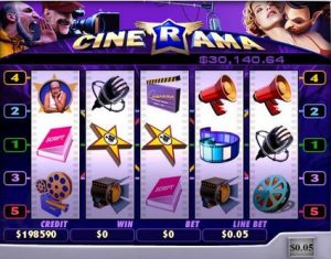Cinerama Progressive Slot game is built on a cinema theme. It has everything, cameras, scripts, lights, megaphones, and the director. For a player, his aim should be to get five cameras lined up in a pay line, and fetch the resulting jackpot.