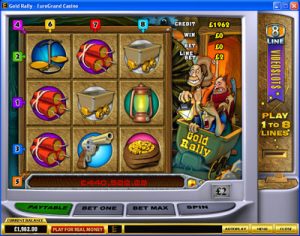 Gold Rally Slot is a nine reel, eight pay line >a href=”http://casinobonusstreak.com/playtechprogressiveslots/”>progressive video slot game from Playtech.