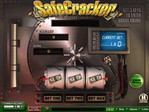 Safecracker is a three reel, one payline slot from Playtech with an alluring 20000 coins jackpot. Its layout is set out like a bank vault, with the slot reels wired up with a system to open the safe, should it hit one of the winning combinations.