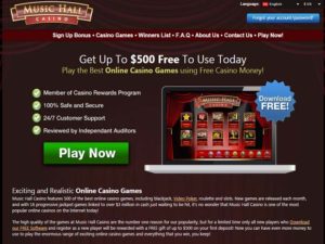 New players of Music Hall Casino geta a 25% matching bonus up to $500 on the first deposit. The wagering requirement is of 30x the bonus amount.