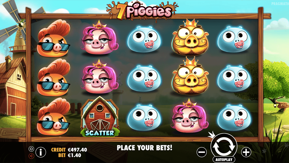 7 Piggies Online Video Slot is a 5 reel with 7 paylines video slot powered by Pragmatic Play. The slot is set in a farm setting with pigs being the animals of concern. The theme is inspired by the farm animals and the symbols are designed in cartoon forms. The slot is set against a farm landscape background and the reels are spin with stacked symbols. There are colored pig characters each having a specific function and some are special like the yellow pig that is the wild symbol. There is also the scatter and the free spins feature.