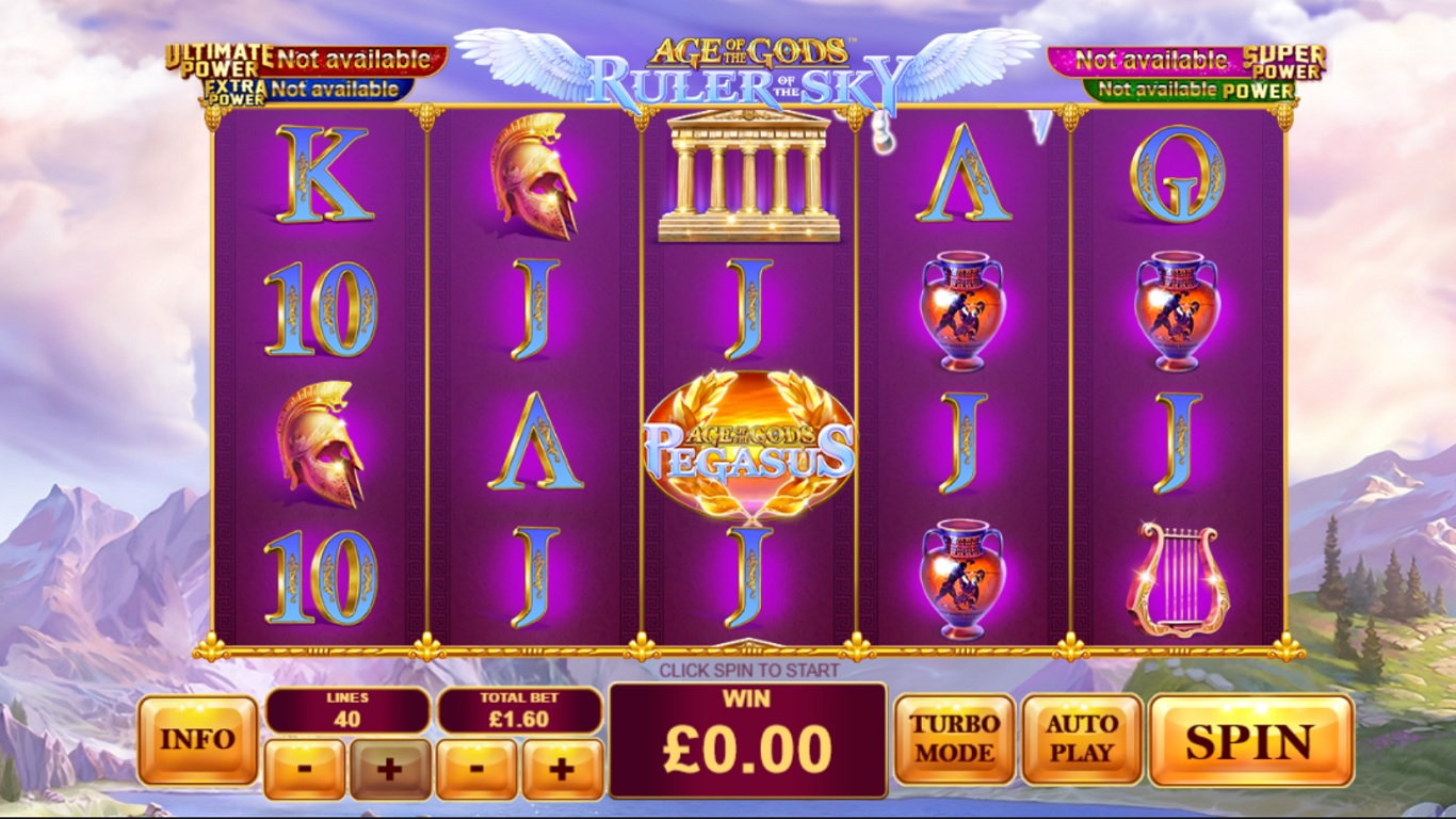 Age Of The Gods Ruler Of The Sky Online Video Slot is a 5 reel with 40 paylines video slot powered by Playtech. The slot has an ancient Greek mythology theme based on Pegasus. The slot comes with stacked wilds, mighty Pegasus free spins and also scatters.
