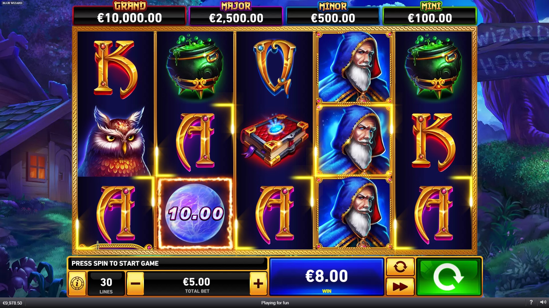Blue Wizard Online Video Slot is a 5 reel with 30 paylines video slot powered by Playtech. The slot is based on a magical wizard set outside the wizard’s house. The slot comes with the Fire Blaze respins and jackpots where you can win one of the 4 jackpots. There is also the free spins feature where you can benefit from the multipliers of up to 16x. The slot can be played from mobile devices.