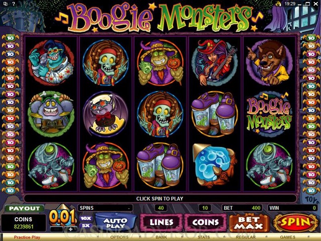 Boogie Monsters Online Video Slot is a five-reel with forty fixed pay-lines from Microgaming. The premise here involves a bunch of freaky toys enjoying themselves in some creepy disco environment in a child’s bedroom. The slot which finally answers the question as to whether or not monsters can dance, and of course they can. It’s a riot of color and sound, and it includes two distinct bonus features for your enjoyment.