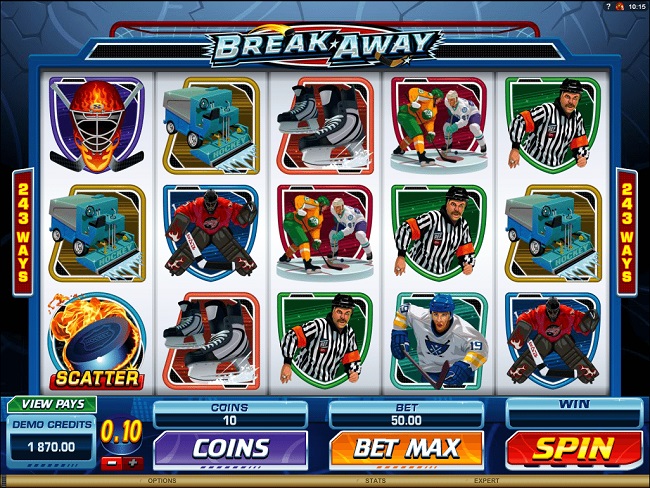 Break Away Online Video Slot has a bundle of extra features that give you more chances of wins. If you love Ice Hockey game, then this game has a lot of things for you to explore. Great graphics and music full of action will keep you indulged in the slot. The features of the game give you an extra edge of making your win huge.