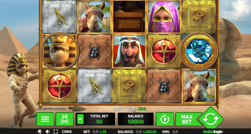 Cash & Camels Online Video Slot is a 5 reel with 10 paylines video slot powered by Stake Logic. The slot has an ancient Egyptian theme. The slot is designed with nice graphics and also nice visuals. It comes with a special bonus prize, spinning wilds and also the free spins feature. The game play is also well detailed and easy to follow.