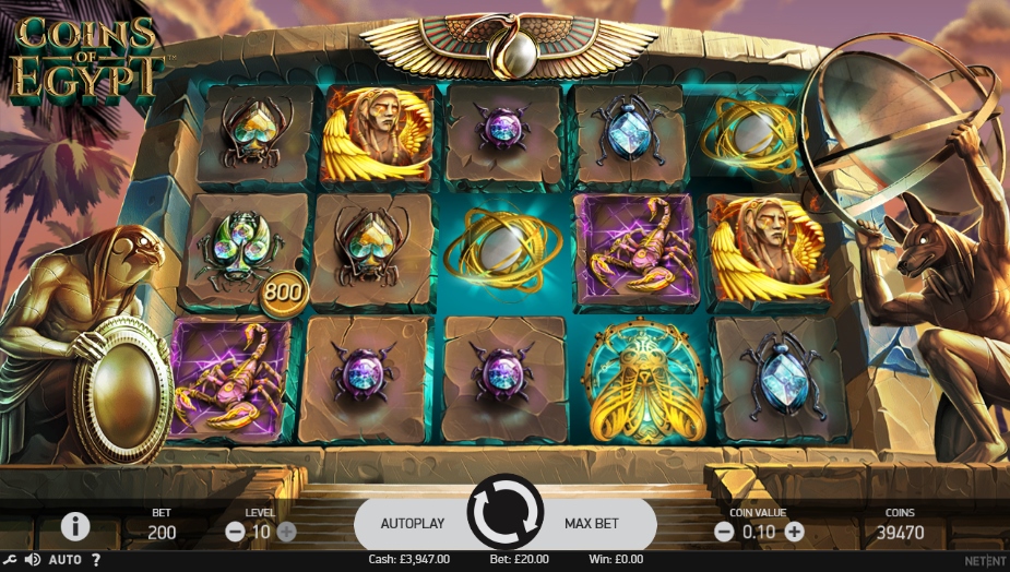 Coins of Egypt Online Video Slot is a new slot by Net Entertainment. The game play is easy and simple. Taking a look at the graphics and also the animations, it is just a typical NetEnt slot. The main game feature is the free spins feature where you get to play with chests to uncover bigger wins.