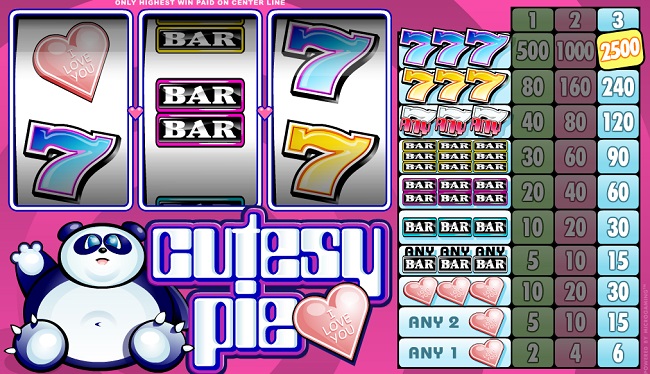 Cutesy Pie Online Video Slot is a simple, cute looking slot. People who love traditional one pay-line slot, this is a must try for them. The panda lover would enjoy this game which has a cool design and number seven to bestow the luck upon you. The payout table on the right side of the screen gives a clear understanding of your wins.