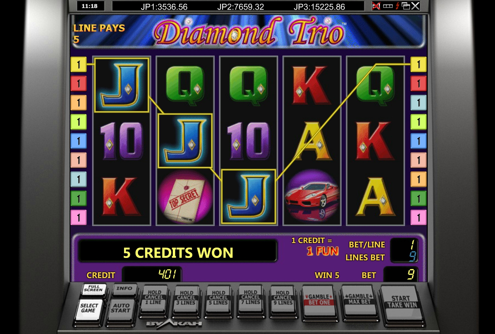 Diamond Trio Online Video Slot is an interesting slot to play. The game play is easy and with good graphics and animations. The free spins feature and the paytable has great opportunities for you to make big wins.