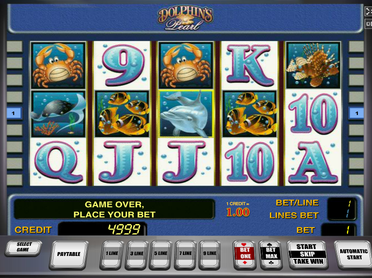 Dolphins Pearl Online Video Slot is a 5 reel with 10 paylines video slot powered by Novomatic. This is a sea themed slot from Novomatic highlighting the underwater Dolphins and the pearl. The setting is in the deep sea with aquatic feeling to it.  The paylines are not fixed and you can either play on 9 or 10 paylines. Players will benefit from wild symbols, scatters and free spins feature. The slot can also be played from all devices supported by Mac, Linux or Windows operating systems.
