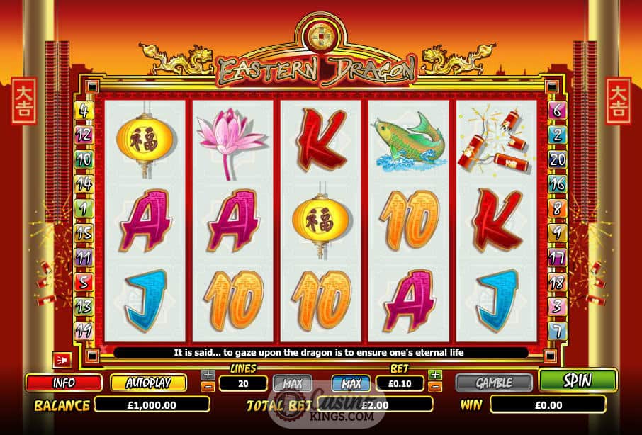 Eastern Dragon Online Video Slot is a 5 reel with 20 paylines video slot powered by NextGen Gaming. Just as the name suggests, Eastern Dragon is about the Chinese dragon stories. Enjoy playing with the firecrackers, paper lanterns, Koi Carp and lucky dragons. The dragon is mad and is terrorizing the village.  The slot offers the most entertaining game play and with great riches that you surely want to pocket. There are so many slots with the dragon themes and NextGen is used to making them. The slot offers scatter bonuses, wilds, free spins and symbol payouts. The slot is also compatible with Linux, Mac and Windows Operating Systems.