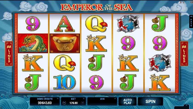 Emperor of the Sea Online Video Slot is a five-reel with eighty-eight pay-lines slot game from Microgaming. The slot has inspiration from the nautical and oriental themes. The game explores the maritime culture of historical China, giving players a glimpse into the seafaring who had the country’s wealth. The game screen is set within an illustration scene of swirling waves and beaming sunlight.