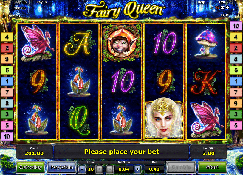 Fairy Queen Online Video Slot is a 5 reel with 10 paylines video slot powered by Novomatic. The slot takes you to the Fairy world on this amazing slot where you can spot some of the wild mushrooms, flowers, dragons and little fairies. The Fairy hollow is the setting of the slot and it comes to life at night when the little ferries illuminate. The reels look really lit. for spotting the symbols you will win symbols combo payouts, there are also wild and scatter symbols and free spins feature.