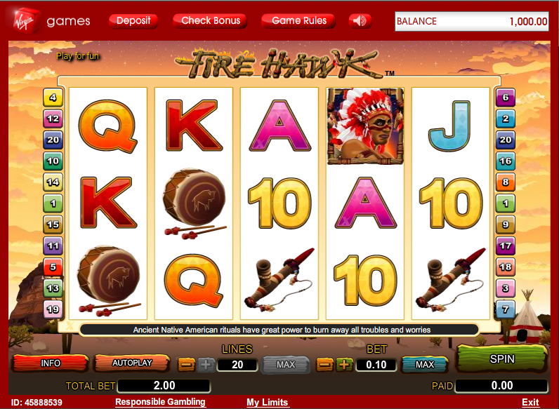Fire Hawk Online Video Slot has an easy game play with just common features like in other NextGen gaming slots. The symbols do not take long to appear on the screen and it is also perfectly animated.