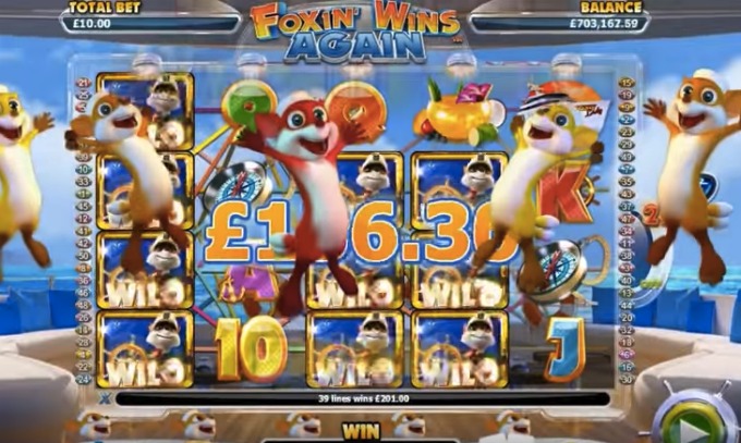 The symbols include A compass, cocktail, Foxin’ lady, a Cruise ship and high value cards such as A, J, K, Q, 10 and 9. The wild symbol is still the Fox while the scatter is still the golden pot.