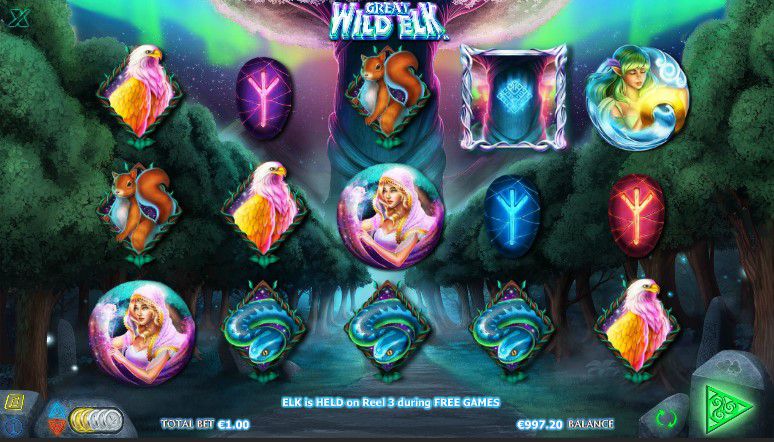 The symbols include the Elk, runes in 4 different colors,  Squirrel, Snake and Eagle and the princess. The Elk is the wild symbol while the tree is the scatter symbol.