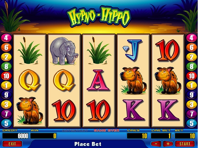 Hypno-Hippo Online Video Slot is a 5 reel with 25 paylines video slot powered by Novomatic. The slot is based on a Hippo with super powers that controls the minds of other animals. It is designed with great graphics quality that sees the symbols appearing colorfully on the reels. The slot is set in a pond with in middle of some wildlife area such as the Savanna. There are Hypnotic features that will set you higher on the winning end. There free spins feature, scatter symbols and the Hypno feature.