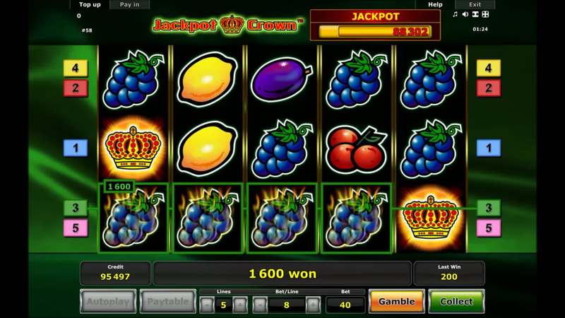 Jackpot Crown Online Video Slot is a 5 reel with 5 paylines video slot powered by Novomatic. If you’re are a fan of fruit and retro themed slots then Jackpot Crown will crown all the fruit symbol slots you have ever played. The slot has no new vibe in it, you will only meet your favorite fruit symbols which are nicely designed and with bright colors on the reels. It is from these symbols that you will land some on the reels and win payouts. The slot has also extra symbols such as the star which is the scatter and the crown jackpot symbols that will trigger the jackpot.