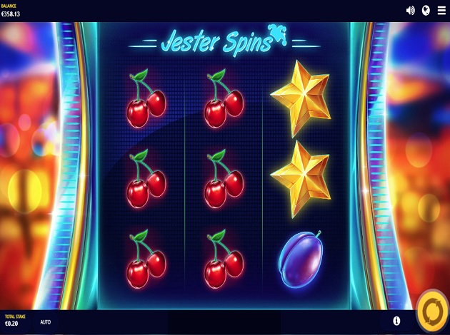 The betting range is from 0.20 to 500 coins per spin. The symbols include cherries, plums, grapes, melons, bells, red 7s and the Jester’s hat.