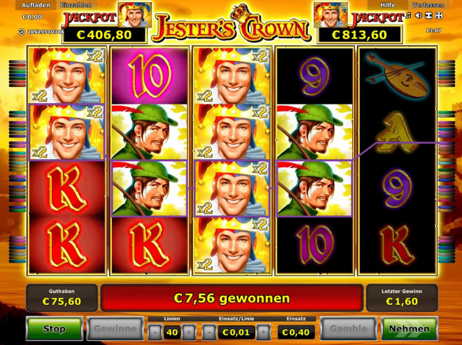 Jester’s Crown Online Video Slot is a 5 reel with 40 paylines video slot powered by Novomatic. The slot takes you back to the ages when the Jester was a very special character in any kingdom or royalty. He would entertain the royalty with jokes and anything funny. Here on the reels the Jester is the wild character that replaces all the other game symbols and doubles the prize. There is also the free spins feature and a progressive jackpot feature that can be won with the wild Jester. The slot can be played from all devices supported by Mac, Linux or Windows operating systems.