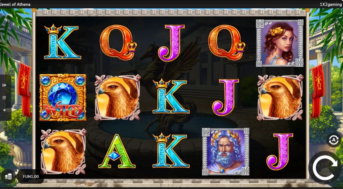 Jewel of Athena Online Video Slot is a 5 reel with 25 paylines video slot powered by 1×2 Gaming. The game is based on Greek mythology featuring old deities such as Zeus and Pegasus. On the reels is an image of a beautiful lady who appears to be the Centre of attention. The game spins on 4 reels, 3 rows, and 25 active lines. You need to match at least 3 or more symbols on the reels to win a payout. There are scatters, sticky wilds, and also free spins. The game can be played on mobile devices.