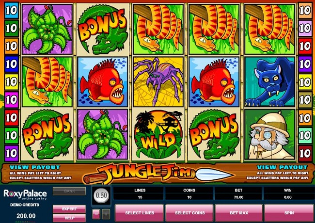 Jungle Jim Online Video Slot is an interesting game with great features. The slot has bright colors and great appearance to attract the players. There’s some profit for you if you can grab the biggest multipliers during the free spin feature. Try the slot once to see what luck the Jim brings for you.