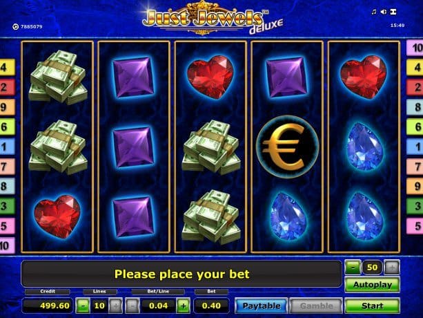 Just Jewels Deluxe Online Video Slot is a 5 reel with 10 paylines video slot powered by Novomatic. This slot is an improvement of the Just Jewels slot still by Novomatic. The slot has new features such as the scatters and a jackpot feature that was not available in the previous version. It is also in this deluxe version that you win huge payouts when you match symbols on the reels. To make it even better, you can win symbol payouts in both ways; from left to right and right to left. The symbols still just the precious stones.