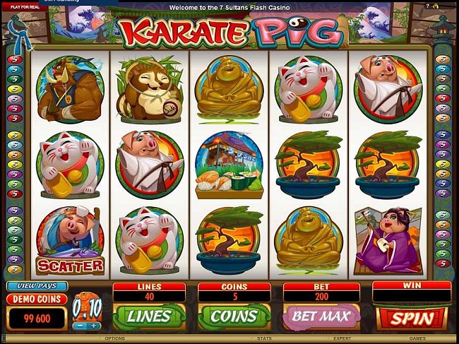 Karate Pig Online Video Slot is a five-reel with forty pay-lines from Microgaming. The reels set against a backdrop of a Chinese landscape. Animals, martial arts, and oriental culture all the elements together make a compelling gaming experience. The slot is colorful, funny, fast-moving and a real pleasure to play. It also contains enough bonus features to satisfy the most demanding of slots fans.