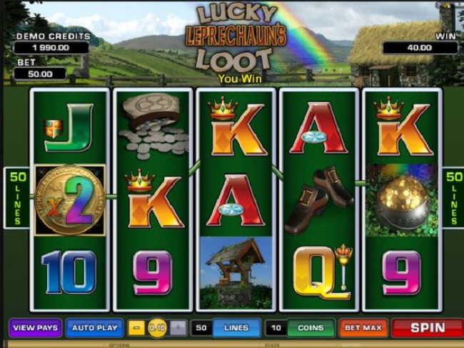 Lucky Leprechaun’s Loot Online Video Slot is a five-reel with fifty pay-lines slot game powered by Microgaming. The slot has an almost realistic view of the Emerald Isle behind the reels. A rainbow ends not in a pot of gold but on some does grazing in a distant field. It is an Irish-themed slot with well-rendered 3D graphics. The background music is a traditional Irish jig that is quirky enough to add some ambiance to the gameplay.