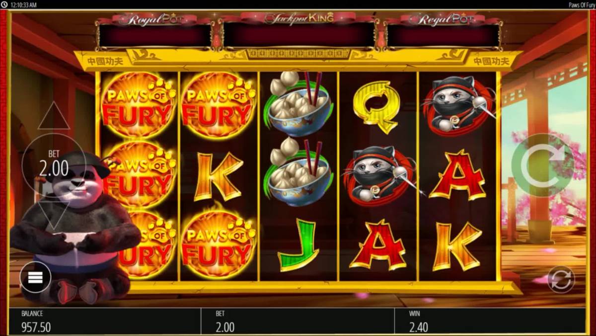 Paws of Fury Online Video Slot is a new slot by Blueprint Gaming. Playing the slot you will realize that not only the game play has been enhanced with quality graphics and animations, but also the features available in the slot. In just one slot there are more than 10 features that can land you to big wins. From the Panda bonuses the Panda Warrior free spins is my favorite since it involves free spins and still wilds in play. The random features triggered from the base game are all good and any can still land you big wins.