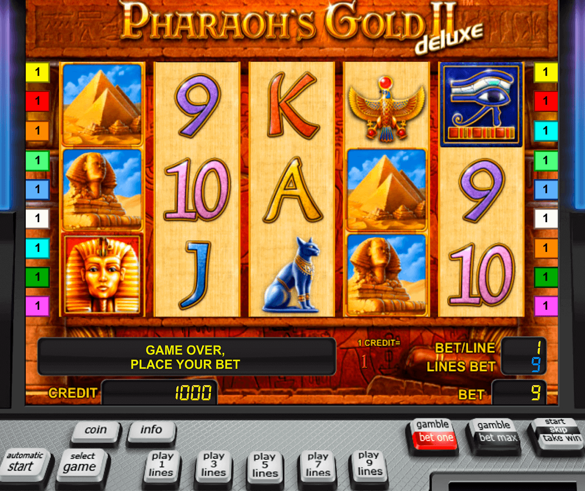Pharaoh’s Gold ΙΙ Deluxe Online Video Slot is a 5 reel with 9 paylines video slot powered by Novomatic. They produced the Pharaoh’s Gold, then the deluxe version but still Novomatic seem to have fallen in love with these theme. The theme highlights the riches found in the tomb of the Pharaohs and riches they were buried with which were just gold and other precious treasures. These tombs are dangerous due to the mummy effect that can strike you at any time. But we have played many of these themes and they are highly paying. There are wilds, scatters and free spins feature to play on the reels.