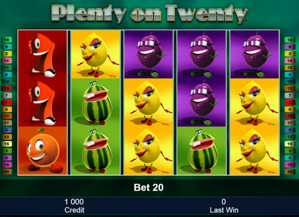Plenty of Twenty Online Video Slot is a 5 reel with 20 fixed paylines video slot powered by Novomatic. The slot is a 5 reel with 20 fixed paylines based on fruit symbols and classic theme packed with classic fruit symbols. When you land the symbols on the reels you win payouts and that is enhanced with stacked symbols that help you win payouts faster. The graphics and the animations do not look that bad and the symbols look great with flashy colors of the tasty fruits. You will find your favorite fruits such as the cherries, plums, oranges as well as classic slots such as the bells and red 7s.