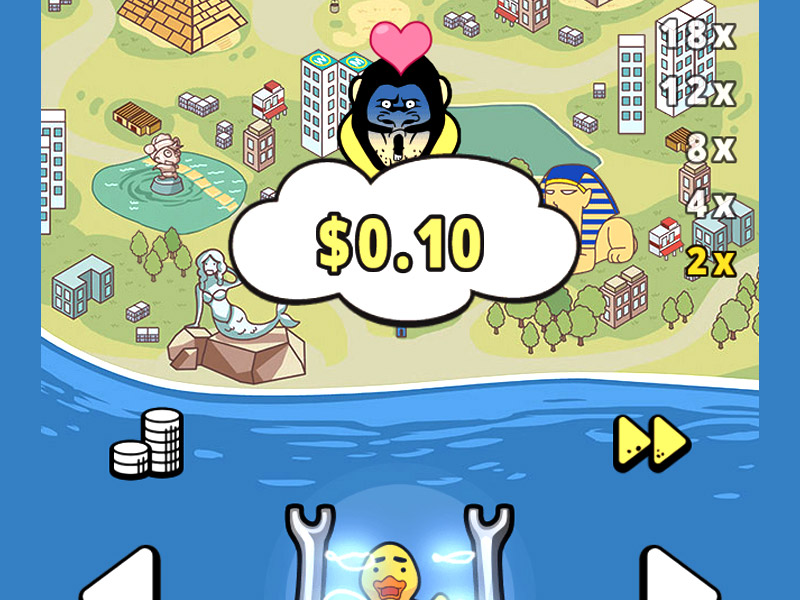 Poke the Guy Online Video Slot is a new Microgaming slot that has an arcade video game design. The slot is played with no paylines, rows or reels it is just in an open field. It is one of the new slots added by Microgaming. The game play involves chasing a weird-looking guy who jumps around the screen while you are trying to hit him with various objects that serve as symbols on the reels. The setting is within a cartoon designed map with buildings sites such as pyramids, Eifel tower and the statue of liberty. The slot is available for play without any download needed and can be played from devices supported by Mac, Linux and also Windows operating systems.