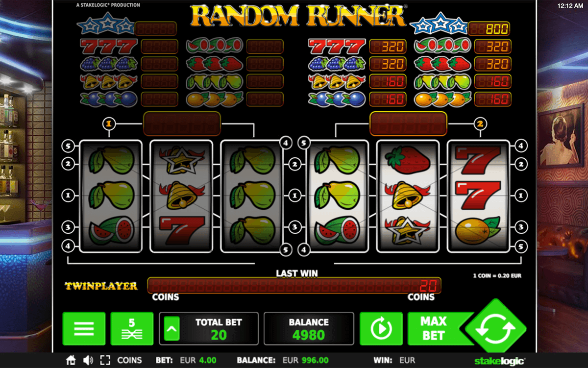 Random Runner Twin Online Video Slot has simple game play. This is arguably one of the higher paying fruit symbol slot that have played. For just landing 3 plums and cherries I got 40x my stake. There is no free spins feature but by just landing combos of these symbols on the reels you can make some good cash. There is also the twin reel feature that makes it stand out from other fruit slots.