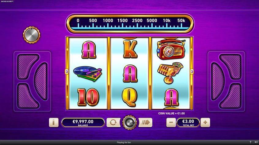 Record Riches Online Video Slot is a 3 reel with 3 paylines video slot powered by Playtech. The game has a retro-styled slot machine with a purple background and a radio-inspired design. It has a gorgeous color combination that makes it appealing. Players can easily control the game using the controls at the bottom of the screen. It spins on 3 rows, 3 reels, and 3 paylines. You need to match at least 3 symbols on a payline to win a payout. There are substituting wilds, scatters, and also the free spins feature. The game can be played on mobile devices.