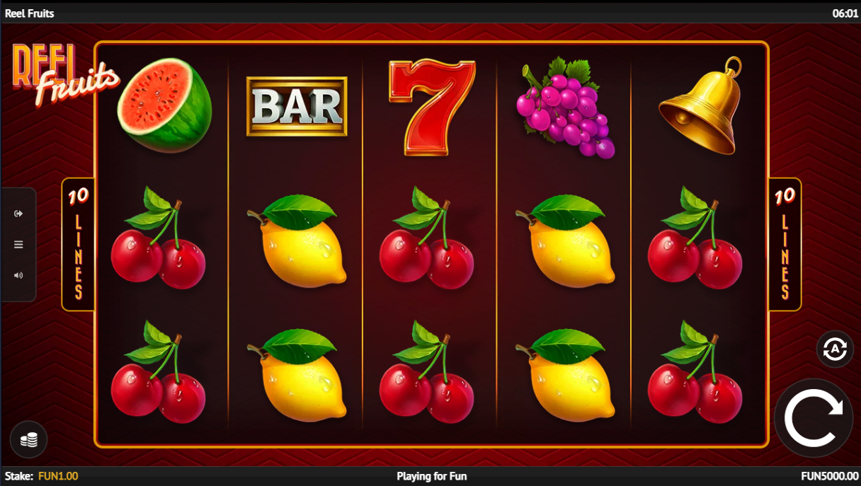 Reel Fruits Online Video Slot is a 5 reel with 10 paylines video slot powered by 1×2 Gaming. 1×2 Gaming did not reinvent anything new in this slot as the game reflects just a traditional slot machine at your casino joint. The graphics and the gameplay are developed, however, to the standard of modern slots. It spins on 5 reels, 3 rows, and 10 active paylines. Reel Fruits has no special symbols or features as expected, however, the fruit combos can land you wins of up to 500x your stake. You need to land at least 3 matching fruit symbols to win a payout. The game can be played on mobile devices.