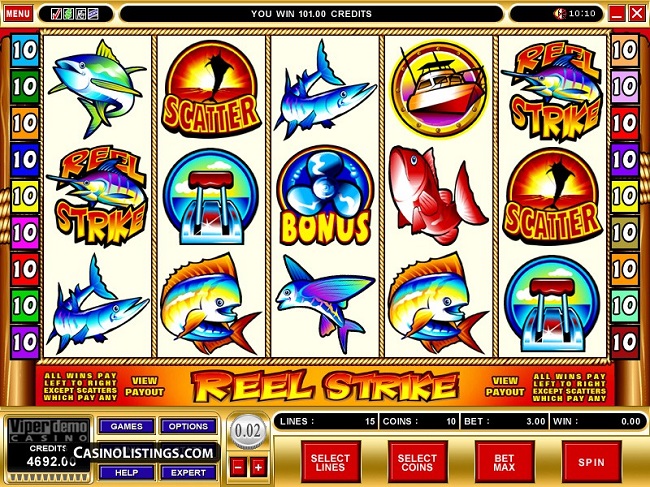 Reel Strike Online Video Slot is a five-reel with fifteen pay-lines slot game powered by Microgaming. Deep sea fishing does offer a little more adventure than an afternoon sitting on a riverbank. The game aims to tap into a bit of that danger by taking us on to the ocean waves for a shot at landing some big fish and some bigger prizes. The reels are in the form of rope on a wooden frame.
