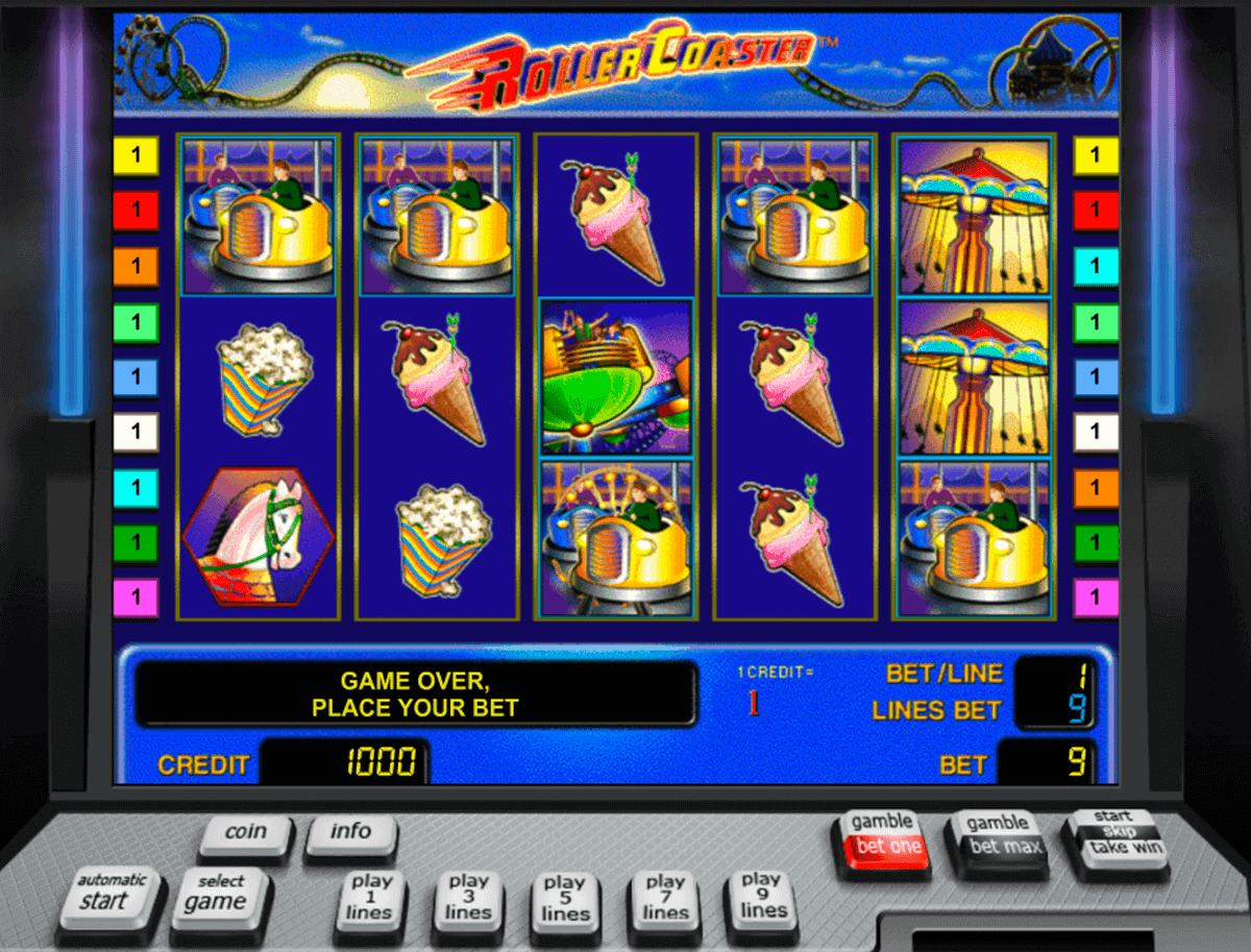 Roller Coaster Online Video Slot is a 5 reel with 9 paylines video slot powered by Novomatic. The slot highlights the childhood thrills of rolling high at 100mph with the Roller Coasters and the merry go rounds. The theme of the game is fun times and celebrations and all the symbols you find on the reels depict just that. On the reels you will find all your childhood favorite day out activities such as Ferris wheel, carousel and fair foods such as lollipops, popcorn and many more. There are scatters, wilds and free spins feature. The slot can be played from all devices supported by Mac, Linux or Windows operating systems.