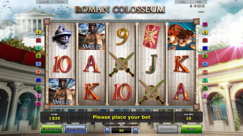 Roman Colosseum Online Video Slot is a 5 reel with 10 paylines video slot powered by Novomatic. The slot takes you back to the ancient times in history of Rome. The Colosseum was the fighting grounds of the gladiators. The gladiators were slaves captured from other empires and territories. You will see the fighting grounds crowded by spectators on the reels with Roman scrolls designs and columns on the frame. The Colosseum was like the modern football stadium when a big match like World cup finals is played and thus the maker has ensured that all that is captured in this slot. You will benefit from free spins rounds, wild symbols and scatters.