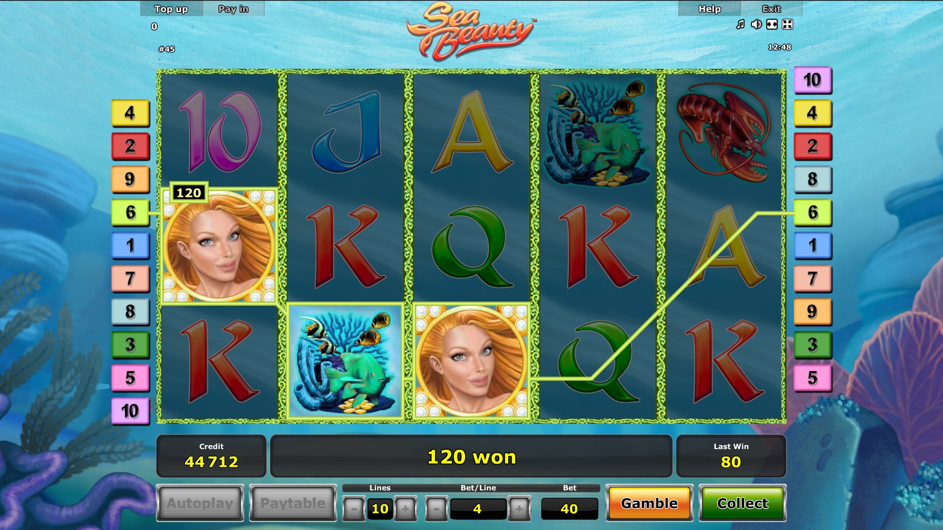 Sea Beauty Online Video Slot is a 5 reel with 10 paylines video slot powered by Novomatic. The slot is set underwater with a beautiful mermaid taking over the reels. The mermaid roams around the coral reef with her sea shells as she appears as stacked on the reels to increase your potential of winning big prizes. The slot has a high variance based on the payouts and nice graphics and also beautiful visuals. There are high paying symbols, free spins feature, multipliers and wild payouts. You will win payouts by landing combos of 3, 4 or 5 symbols on the reels. The slot can be played from devices supported by Mac, Linux and also Windows operating systems.