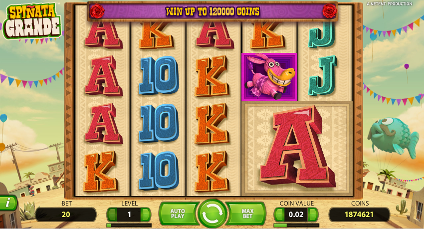 Spinata Grande Video Slot is a 5 reel with 40 paylines video slot powered by Net Entertainment. The slot has a Mexican party theme with colored Pinatas in shapes of a donkey, fish, a parrot and a bull. The setting is in the small Mexican village. The slot has great features such as mini slot reels with a 3 by 3 reels, free spins, colossal wilds and a bonus feature. The slot can be played form devices that support Mac, Windows or Linux operating systems.