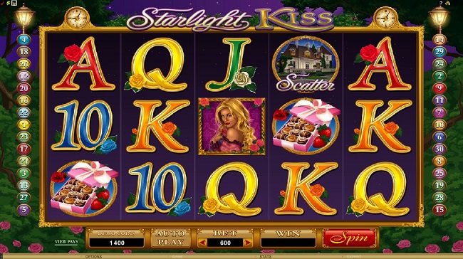 Starlight Kiss Online Video Slot is a five-reel with thirty pay-lines slot game from Microgaming. The game is ideal for the ladies. But, of course, the themes of love and romance apply to everyone. The slot set under a moonlit sky in the confines of a rose garden. The tale of two lovers whose passion remains ignite through the game.