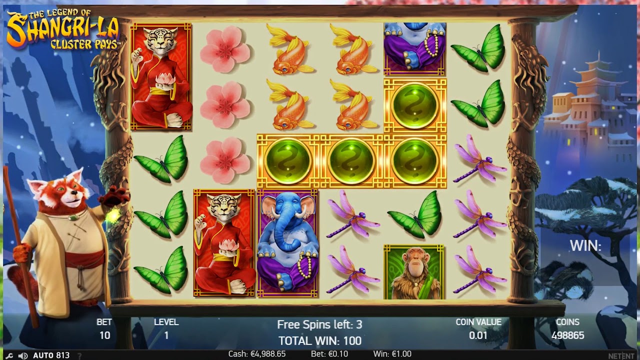 The Legend of Shangri-La: Cluster Pays Online Video Slot is great slot. The slot has an impressive game play and pays well when you trigger most of its features. The substitution feature and the free spins feature will do you great.