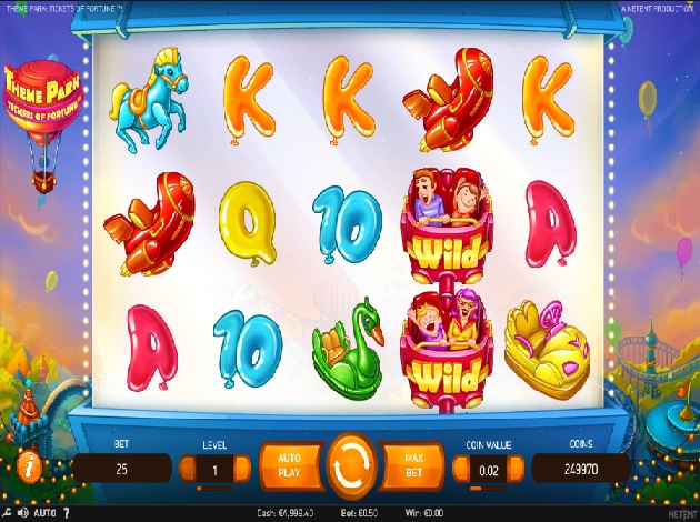 Theme Park: Tickets of Fortune Online Video Slot is a 5 reel with 50 paylines video slot powered by Net Entertainment. This fun based slot has stacked wild feature and lots of bonus features. The reels take you to your childhood days when theme park with roller-coaster and Merry-go rounds was the thing of the day. The fun fair does not only come with lots of fun but great prizes. The reels are designed to float on top of the fun fair park, hot air balloons floating on the sky. The graphics quality also look great. If you manage to match symbols on active paylines you will win prizes.