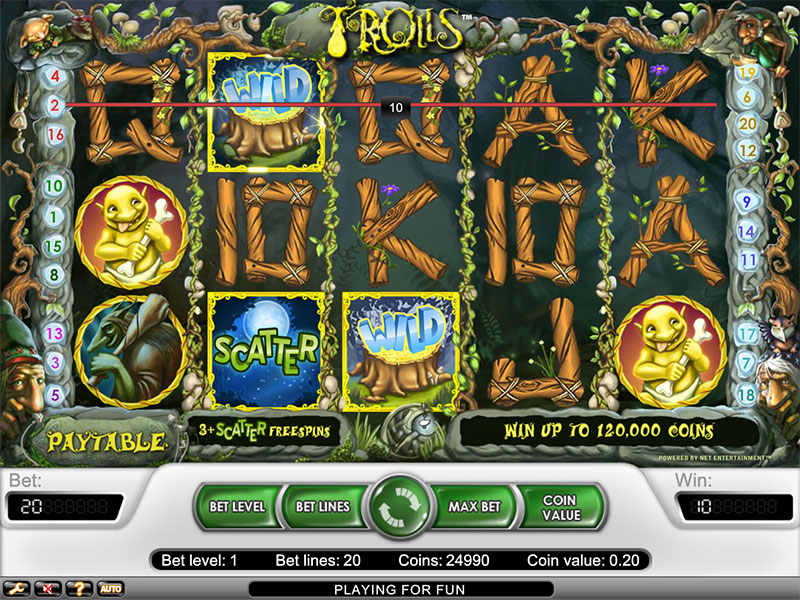 Trolls Online Video Slot is a 5 reel with 20 paylines video slot powered by Net Entertainment. The slot features some of the cruel creatures that are only meant to live under bridges. But in this slot, the Trolls have been uplifted to become the creatures that will win you goodies. The setting is in ancient Norse habitat. The main game’s feature is the golden wild that pays 4x when it completes a winning payline.
