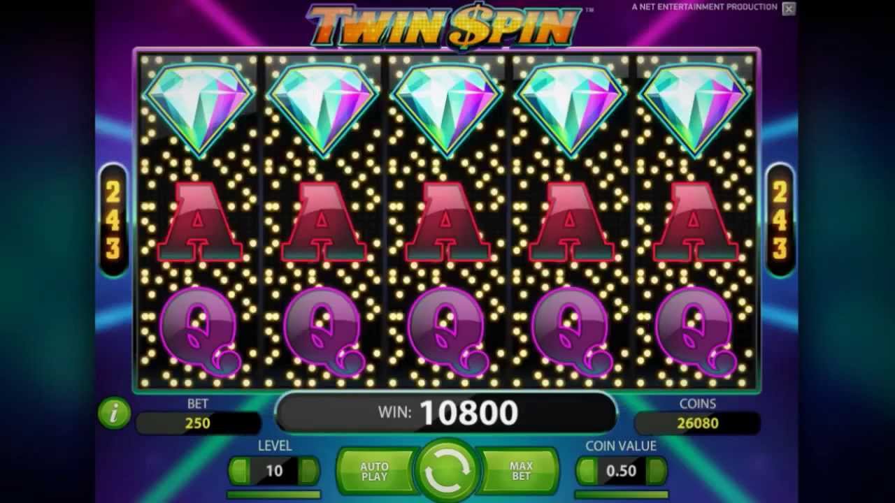 Twin Spin Online Video Slot is a 5 reel with 243 paylines video slot powered by Net Entertainment. You probably used to the modern fused slots with complicated game play. Twin Spin offers a very simple game borrowing from the classic slot features and a bit of modern technology. Set in a dark blue and laser beam lights reels. The slot has only the wild symbol and the twin reel feature that enhances in symbol combination for greater wins. There are no scatters, free spins or any bonus feature. The slot is also compatible with Linux, Mac and Windows Operating Systems.