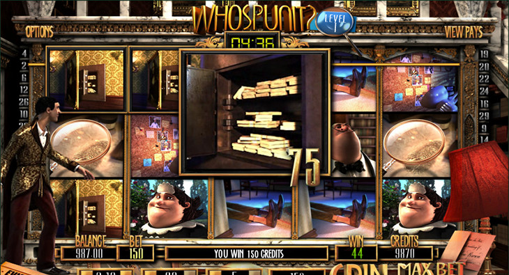 Who Spun It Online Video Slot is a 5 reel slot game with 30 paylines powered by Betsoft Gaming. The video slot has a murder scene theme and the player is the detective who has to be at the scene to find clues and solve the mystery of who killed the house owner, Dr. Farmington. The symbols include a dead body, a safe, magnifying glass, five suspects, wall full of clues.
