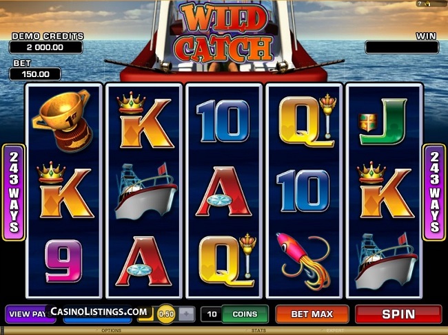 Wild Catch Online Video Slot is a perfect fishing trip by Microgaming, with 5-reel, 3-rows and 243 ways to win. You can enjoy the fun of sailing on the big ship and catching big fish along with winning huge prizes. Set up against the beautiful view of the sea with white frame reels giving you a real adventure. The design of the slot is very appealing along with funny elements. Be ready to explore two bonus features with huge wins.