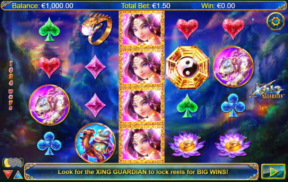 Xing Guardian Online Video Slot is online video slot played on 5 reels and 1024 paylines. It was released in February 2017 by NextGen. The slot features an Asian theme with dragons and the famous Azure the dragon. A beautiful girl acts as the wild. The slot setting is a calm night on a hilly village with lanterns set on the foot of the baby hills and a temple resting in between the hills.