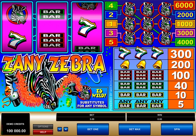 Zany Zebra Online Video Slot is an entertaining classic slot with high payouts. The graphics are bright and colorful with some good music in the background. One must try this slot to see what luck can zebra bring. You can try this slot for free in a demo account before you start with real money games.